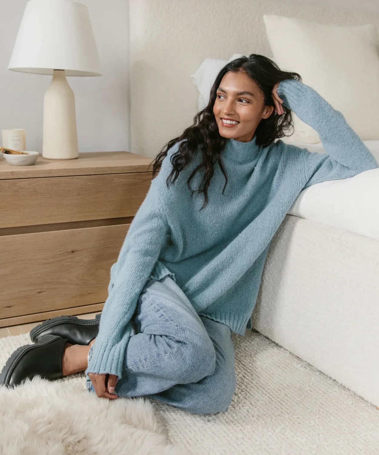 Alpaca Mockneck Pullover Vintage Blue