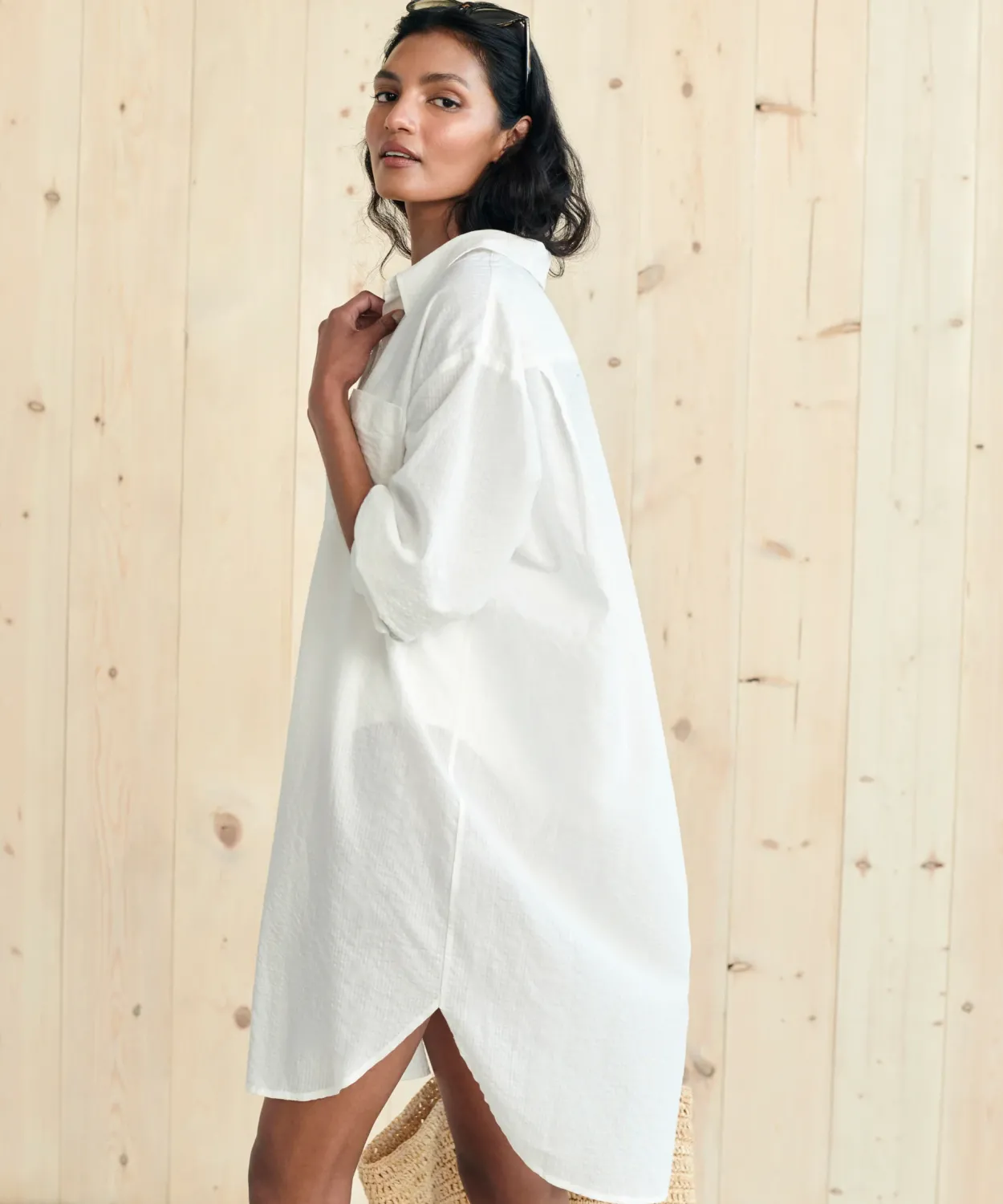 Slightly Sheer With A Subtle Shadow Stripe And Effortlessly Oversized, Our Beach Shirt Is An Elevated Take On Essential Summer-Wear.