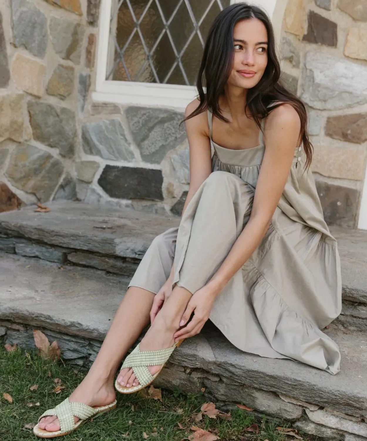 Raffia Crossover Sandal Willow