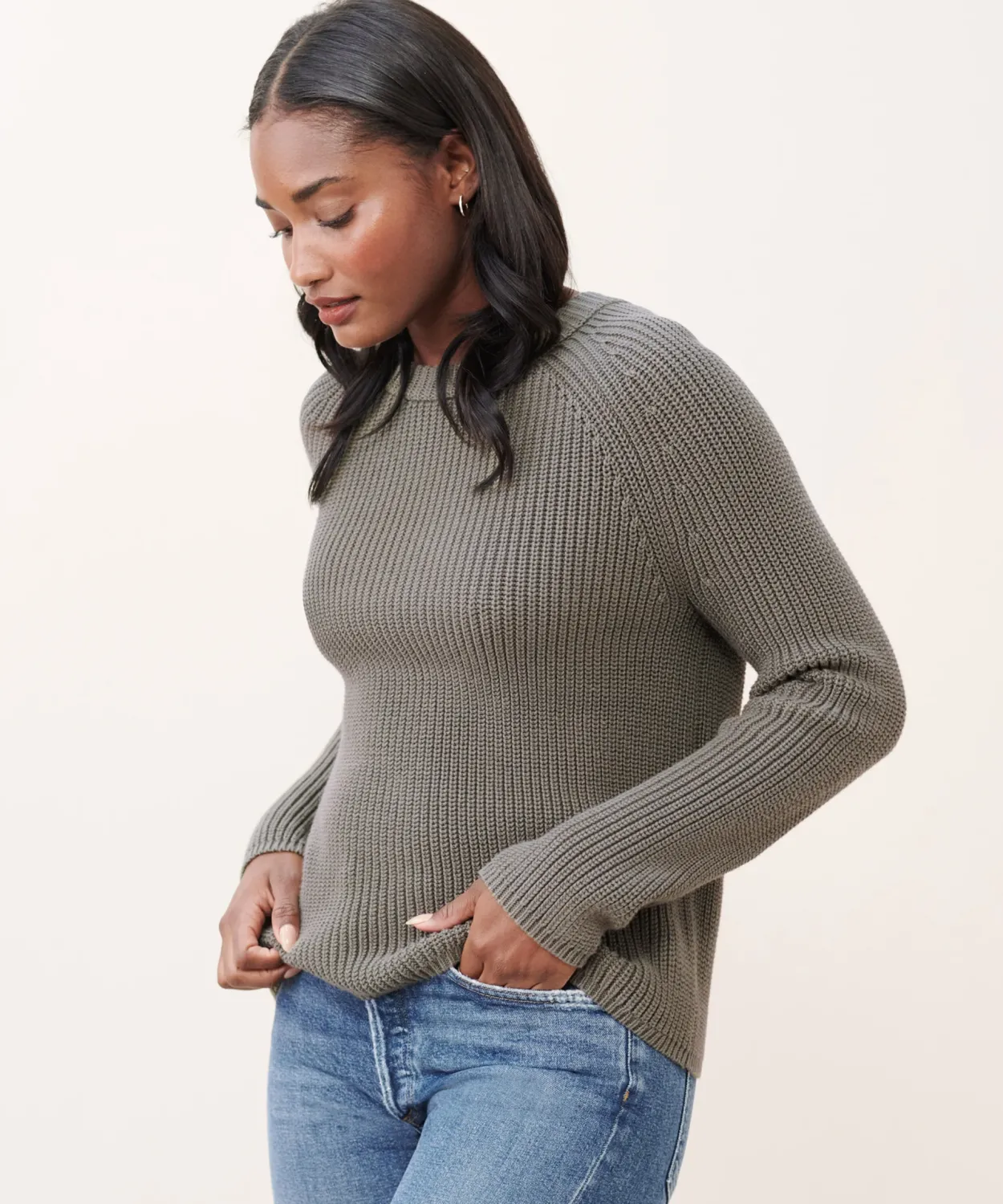 Cotton Fisherman Sweater Eucalyptus