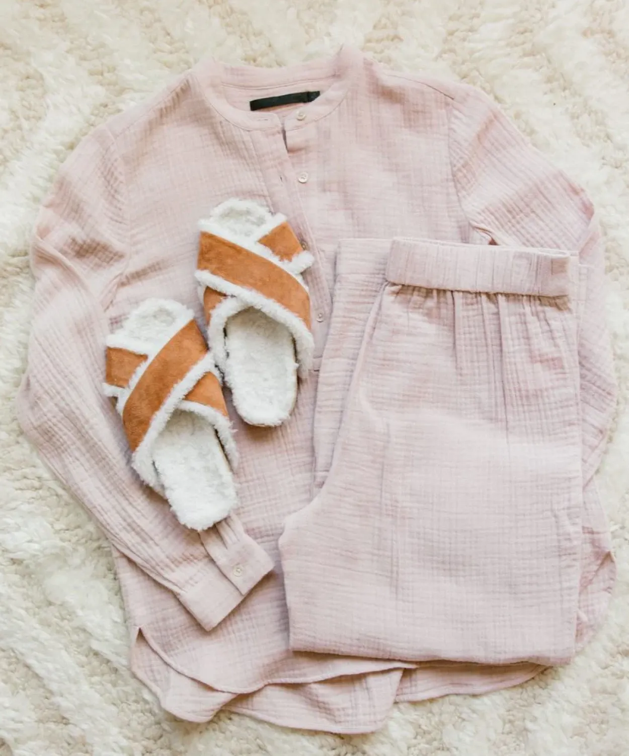 With The Style Of Our Crossover Sandal And The Comfort Of Our Shearling-Lined Moc Clogs, The Shearling-Lined Crossover Sandal Is A Cozy Take On Everyday Footwear That You Can Wear Anywhere. Suede Upper With Shearling Lining And A Cork Footbed. Made In Italy.