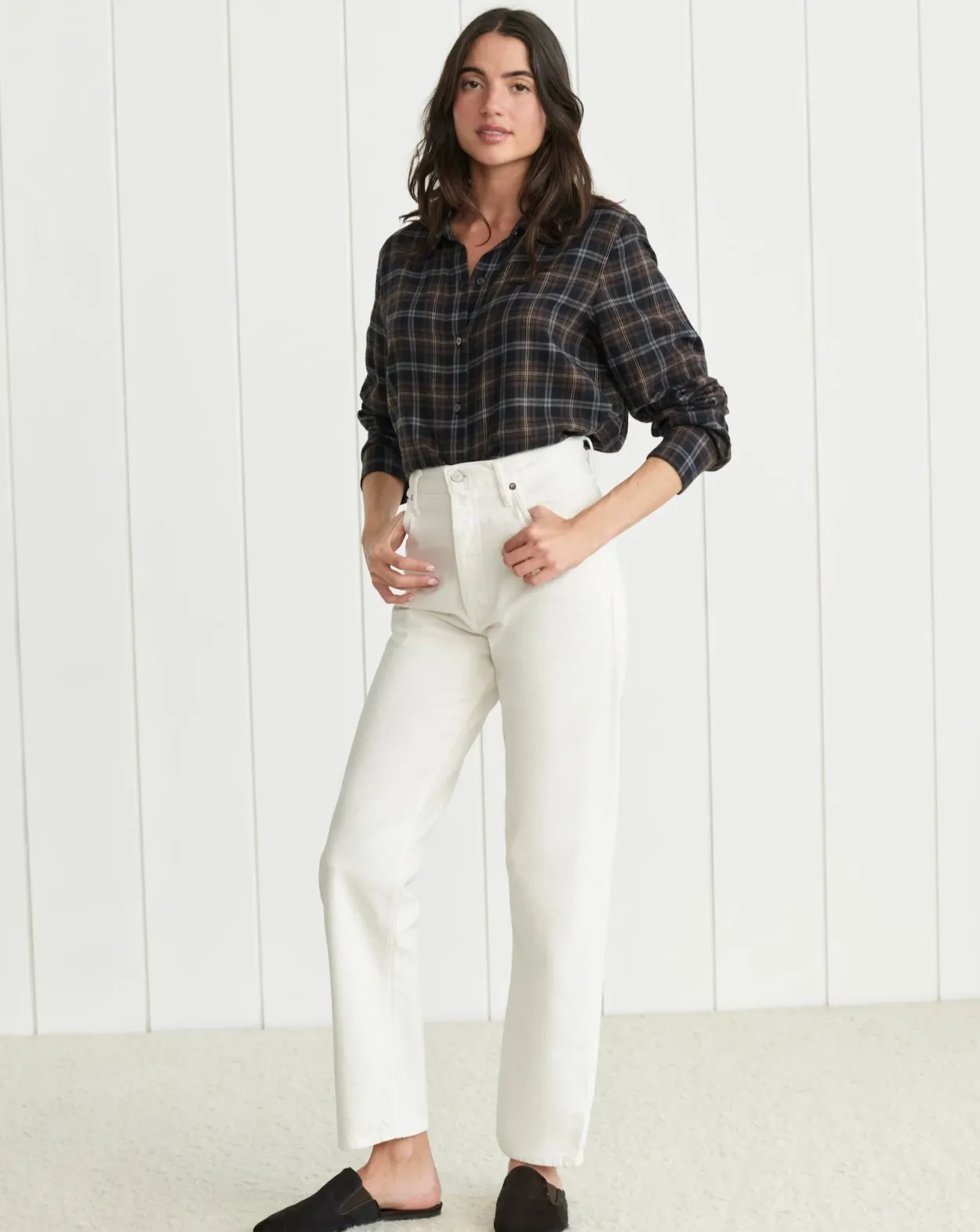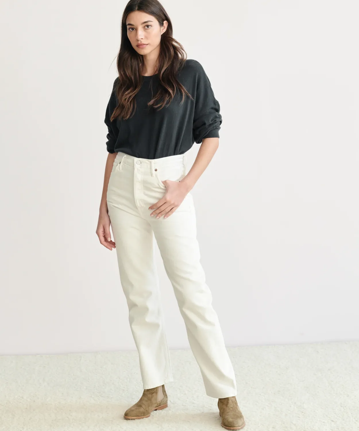 Vintage-Inspired, High-Waisted Straight Jean With A Button Fly. Crafted From Soft, Non-Stretch Denim With A 29.5” Inseam.