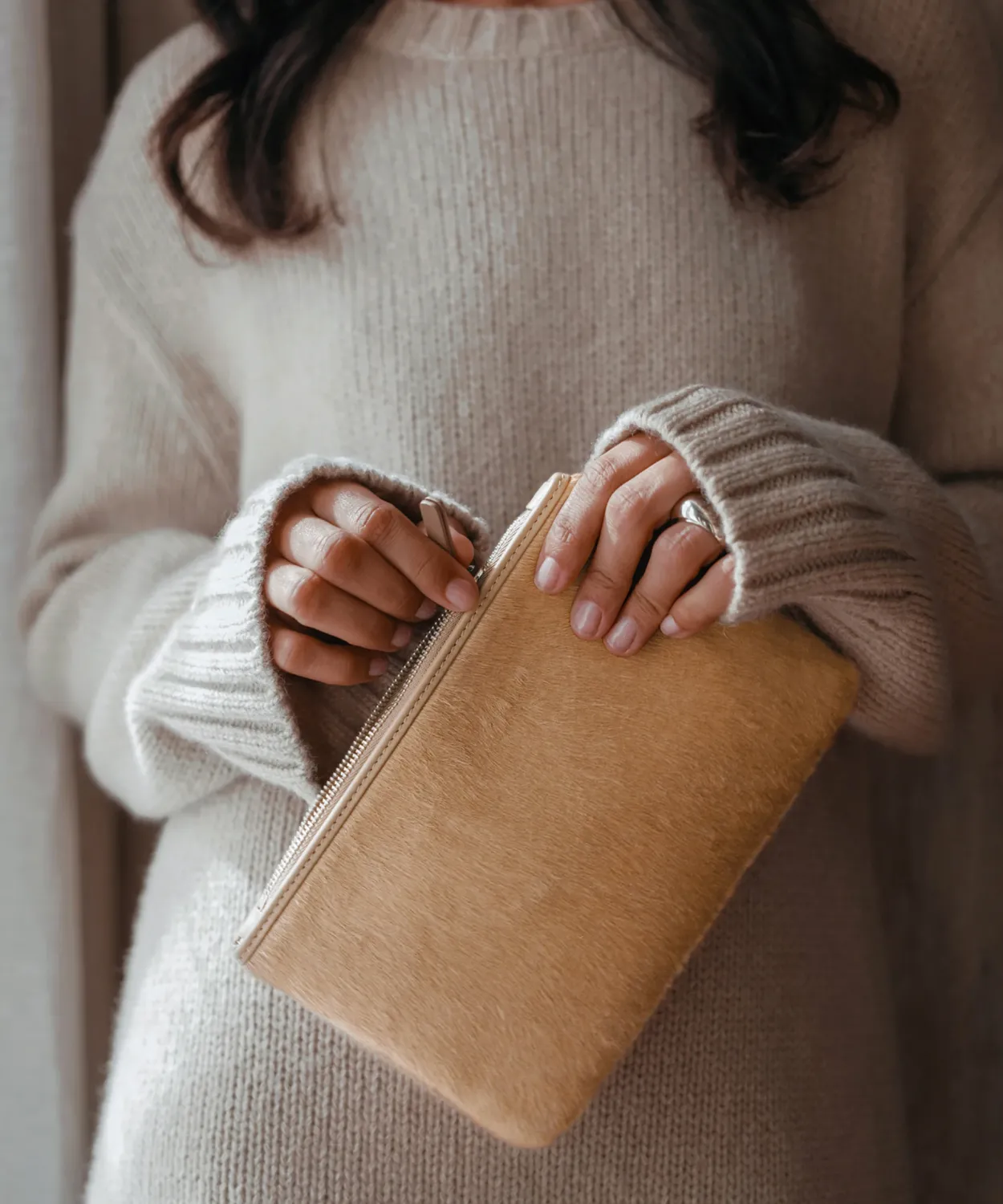 Pony Hair Zip Pouch Fawn