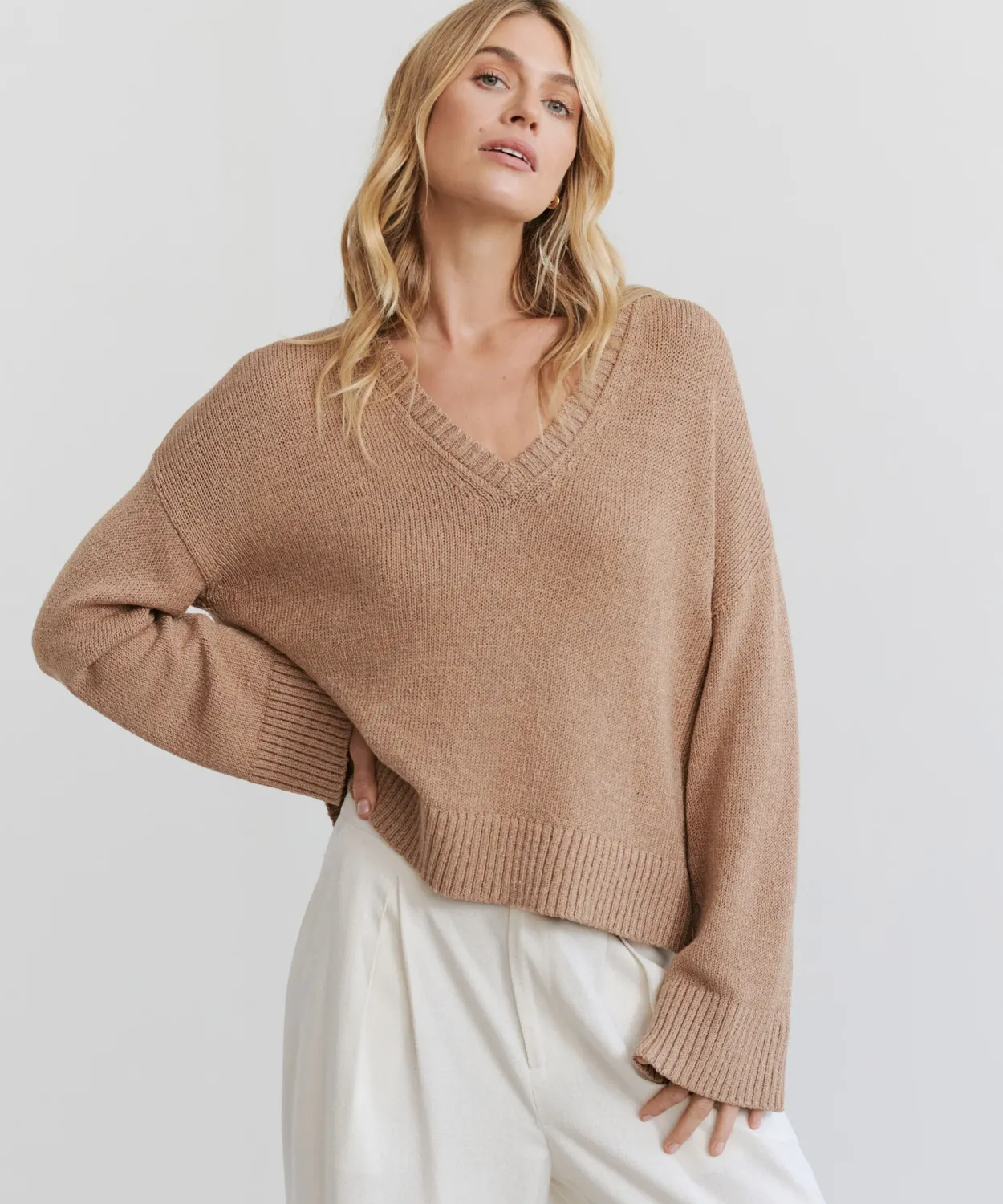This Lightweight, Summer-Ready Knit Features A Relaxed V-Neck And Subtle Sheen.