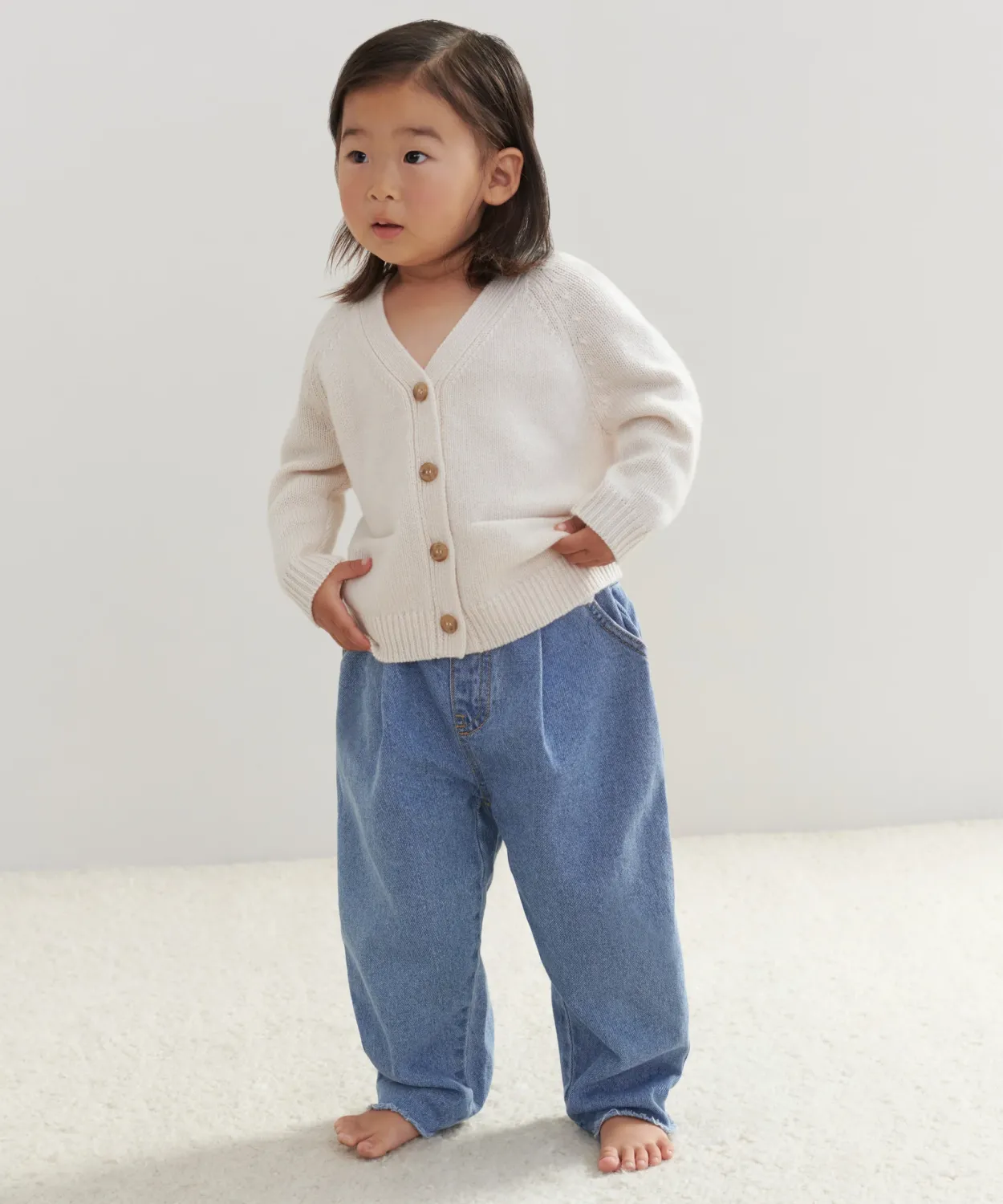 The Classic Stanford Cardigan In Mini-Me Form, Made In A Wool-Blend Yarn.