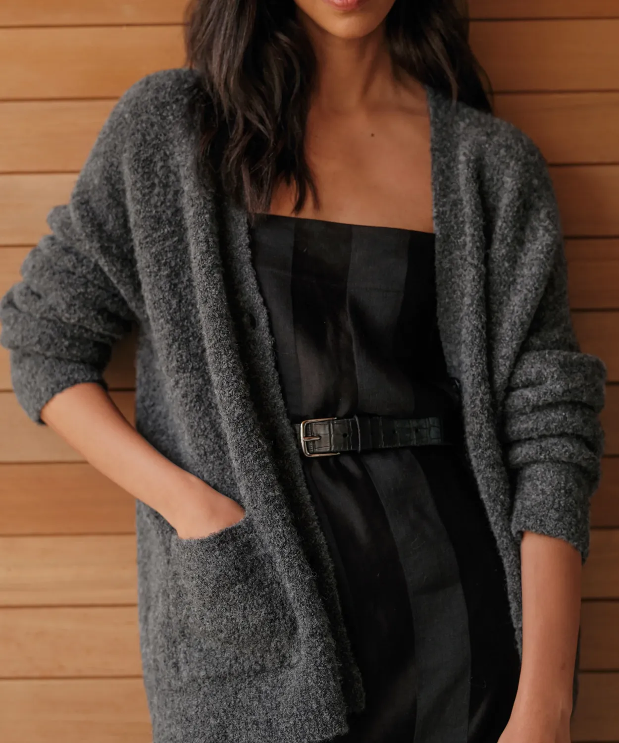 Boucle Cocoon Cardigan Charcoal