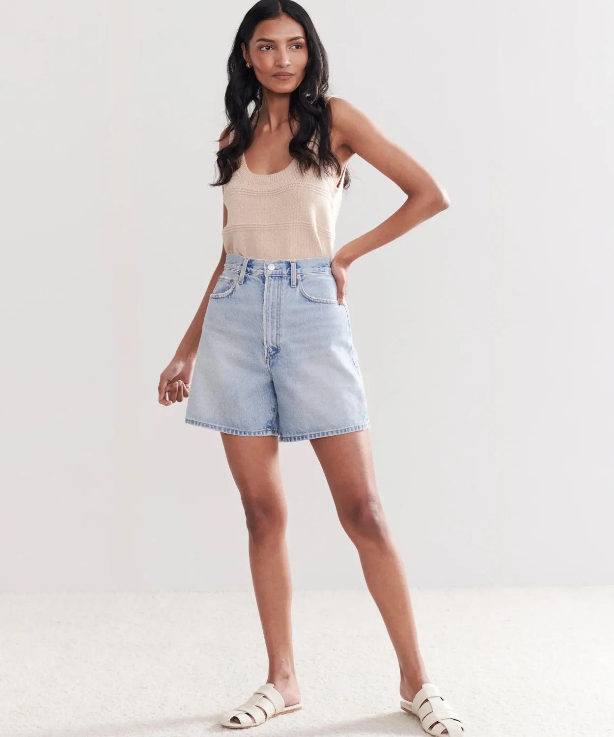High-Waisted Short With A Zip Fly. Crafted From Soft, Non-Stretch Denim With A 5.5” Inseam.