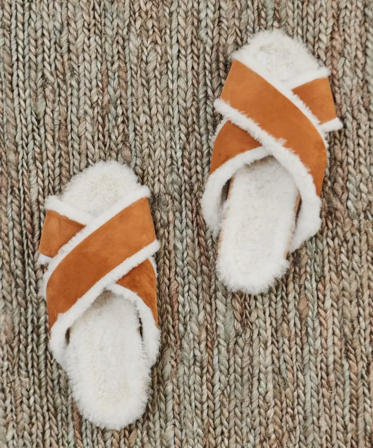 With The Style Of Our Crossover Sandal And The Comfort Of Our Shearling-Lined Moc Clogs, The Shearling-Lined Crossover Sandal Is A Cozy Take On Everyday Footwear That You Can Wear Anywhere. Suede Upper With Shearling Lining And A Cork Footbed. Made In Italy.